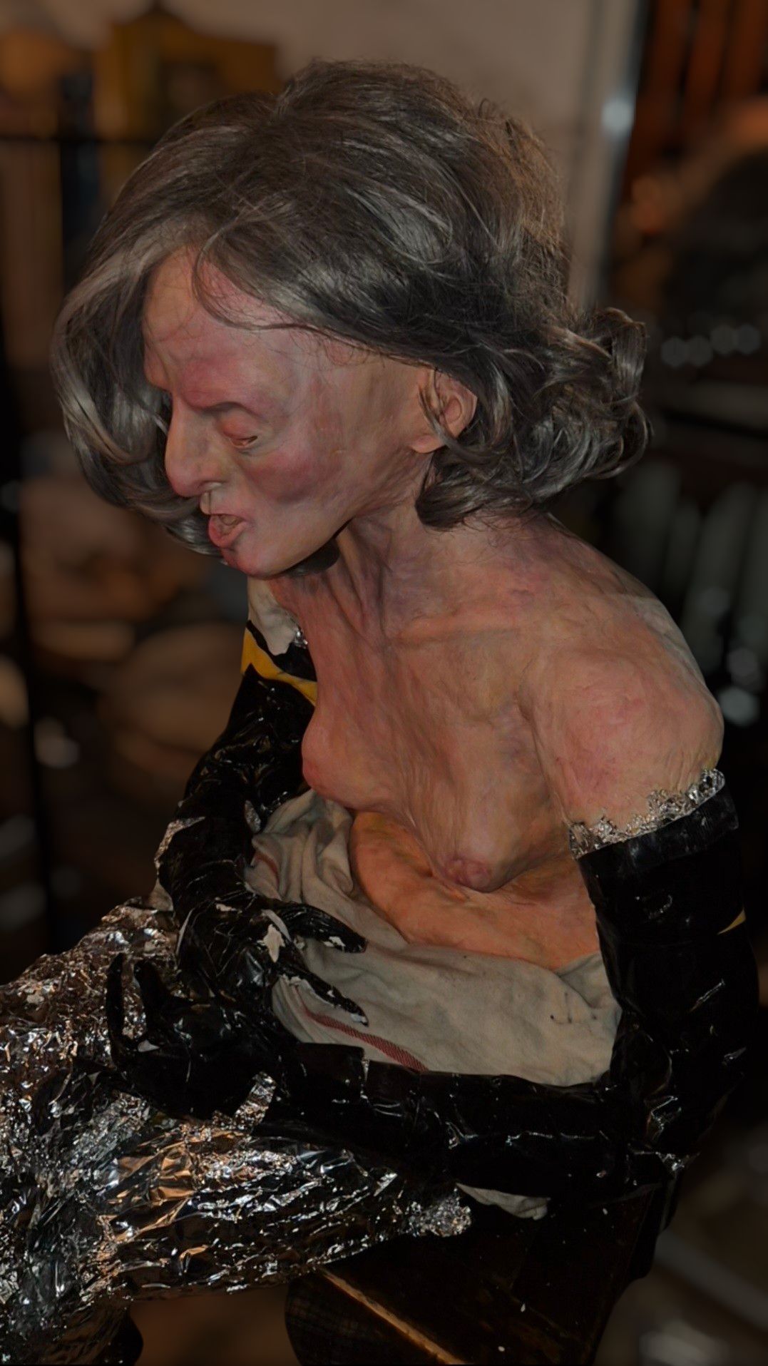 (Aidon ihmisen kokoinen kokovartaloveistos valmistumassa kesän näyttelyyn)